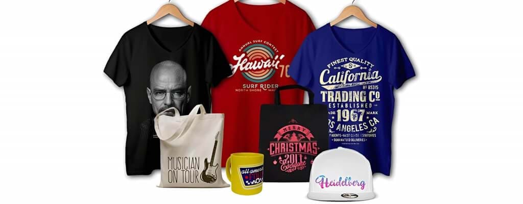 verschiedenen Kleidungsstücken wie T-Shirts, Sweatshirts, Poloshirts,